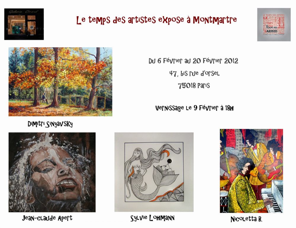 Corine VICENS directrice artistique du "Temps des Artistes" invite, ce mois encore le peintre d'origine Russe Dimitri SINYAVSKY, à sa manifestation collective de Février, aux pieds des pentes de Montmartre.