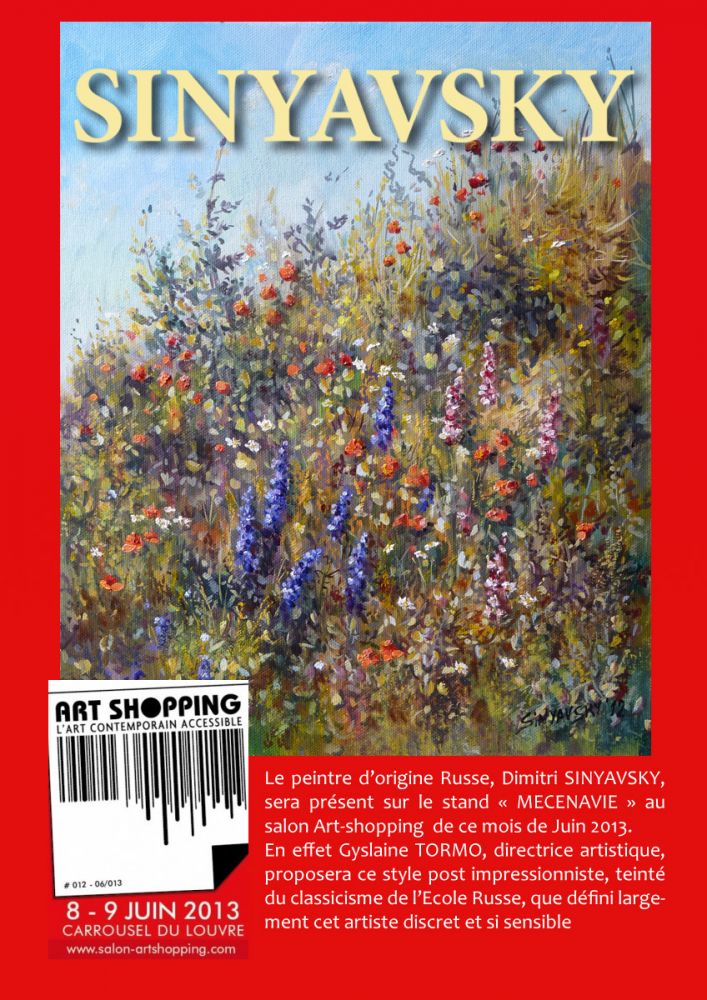 Une douzaine d'huiles du peintre d'origine Russe, Dimitri SINYAVSKY, seront présentées par Gyslaine TORMO, directrice artistique, sur le stand "MECENAVIE" au salon Art shopping de ce mois de Juin.
