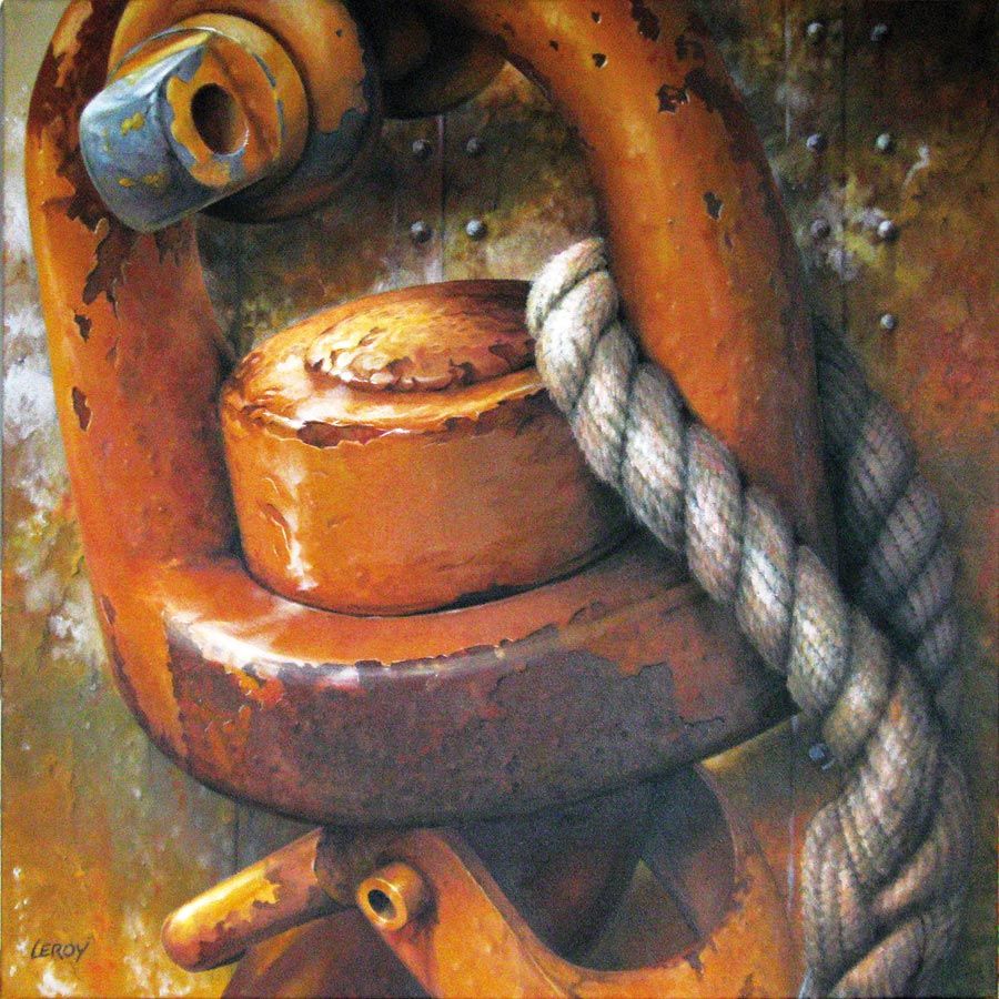 Avec une peinture proche de l’hyperréalisme, Christian, membre de l’Académie des Arts et Sciences de la Mer, nous plonge au cœur des matières et ambiances portuaires.