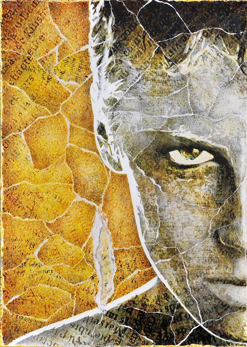 A toujours côtoyé le monde de l'image & des mots, s’en imprègne & y puise son inspiration. Attentive au monde virtuel qui nous entoure, reste très attachée au papier (base de son travail) & à la typographie (journaux, livres, typos manuscrites jusqu’au support numérique qui lui permet de "fondre" la typo dans ses créations). Peint à l'instinct - sentiment de liberté - no limit. Manie les couleurs comme le N/B (encres, crayons, acryliques, pastels...) sur fond de papiers déchirés recollés - aime la profondeur née de ce patchwork de matières. On retrouve sa passion pour la photographie à travers le cadrage, l'ombre & la lumière de ses tableaux - sorte d'arrêt sur image d'une expression, d'une émotion, d'un détail, d'un mouvement, d'un instant de vie.