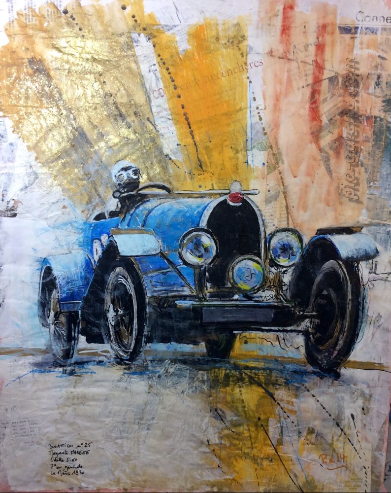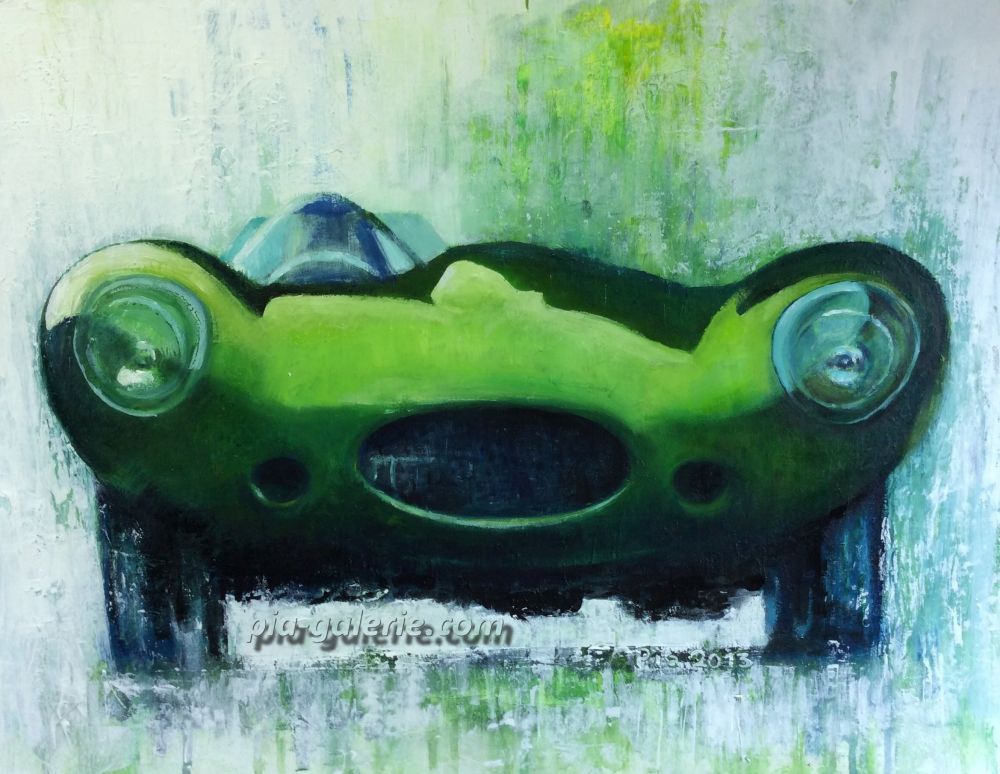 Ce tableau aurait pu s'appeler "La grenouille", de par la forme caractéristique de la Jaguar Type D.