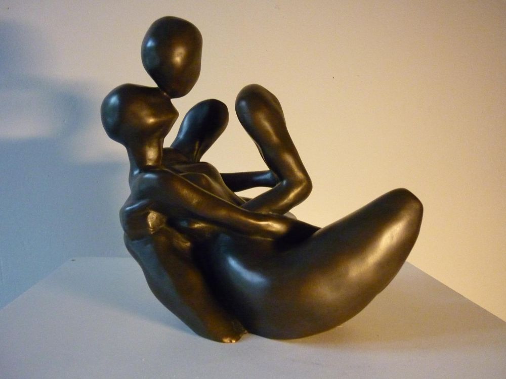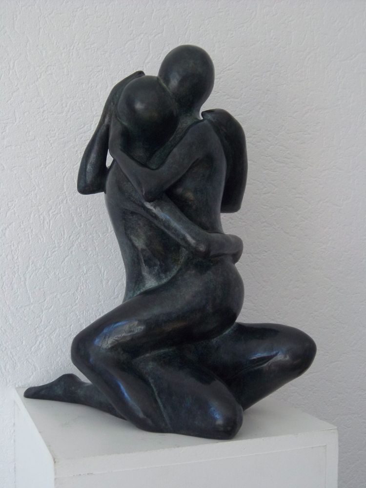 Mes sculptures représentent des personnes seules ou liées, soudées entre elles, unies dans une représentation charnelle et sensuelle tout en rondeur… Pleinement unies, avec ce qu’il faut d’abstraction pour que la forme soit suffisamment dépouillée de « fioritures », sans dénaturer le genre humain. Mes plus récentes sculptures, grâce au vide laissé par l’abstraction, grâce à l’ombre qu’elles projettent, poussent l’interprétation de chacun à recomposer l’espace.