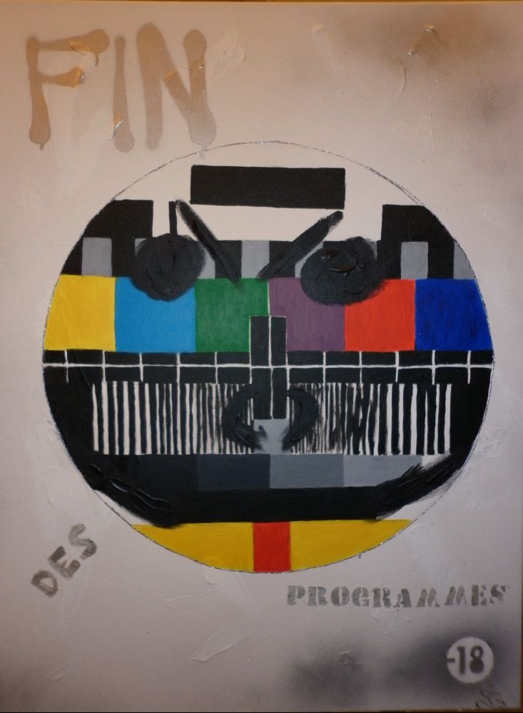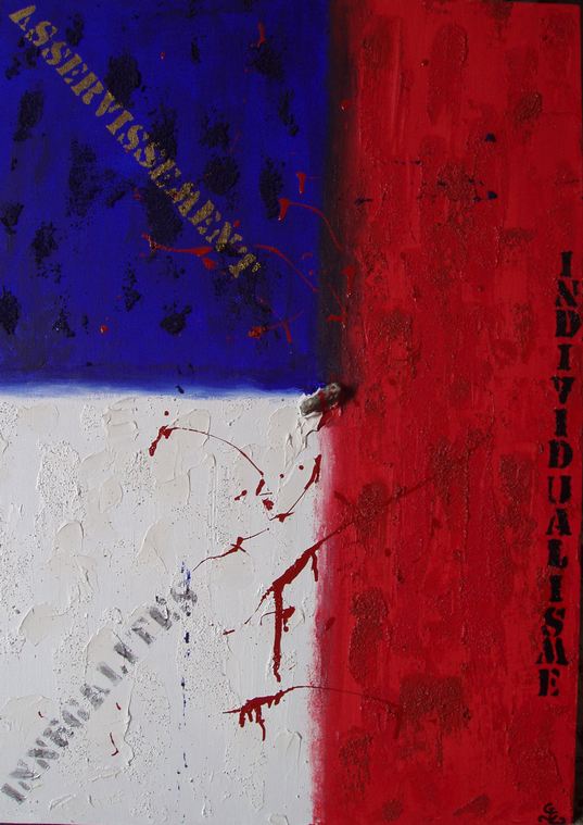 Acrylique et médium sablé avec incrustation de galet sur toile.Les valeurs républicaines parfois malmenées... |