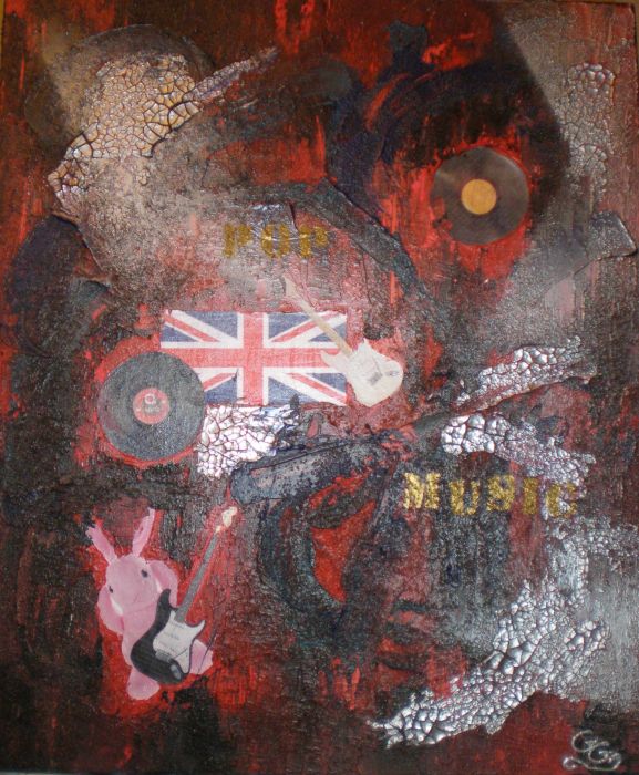 Acrylique, sable et collages sur toile.Un petit esprit pop music pour egayer cette periode difficile. |