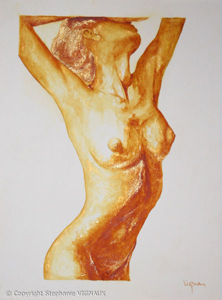 Art pratiquéPeinture, AquarelleSite de l'artistehttp://https://www.stephanie-vignaux.frPrésentation de l'artisteAvez-vous déjà écouté un artiste parler de lui ? Eh bien, je peux vous assurer que cela peut vite devenir assommant, avec le risque de vous retrouver comme la Belle au bois dormant, à roupiller pour 100 ans.Voilà pourquoi je ne vous conterai pas ma naissance à Tarbes, au sein d’une famille d’artistes ; penchés sur mon berceau, un grand-père – Marcel Bonnefous –, artiste peintre foncièrement doué et un oncle – Pierre Clavaret – sculpteur reconnu, se plaisant en chanteur d’opéra à ses heures perdues. Je ne vous narrerai pas, non plus, comment j’ai usé mes fonds de pot de peinture à l’Ecole des Arts de Tarbes et à l'ESACT pour apprendre la Sculpture et m‘exercer aux techniques de l’huile, de l’aquarelle et du croquis de nu d’après modèle vivant. Vous confesser que je peins, avant tout, des nus féminins et masculins serait, à l'évidence, vous empoisonner pour quelques pommes à croquer. Bien évidemment, je ne relaterai pas mes expositions de Paris au Touquet, en passant par l’Espagne et les nombreuses autres cimaises de Salons et baguettes de galeries. Et, croyez-moi, en réponse, il serait fichtrement ronflant et "carabossien" de vous dire que mes peintures ont été plusieurs fois récompensées lors de salons artistiques. Non, tout cela, vous ne le saurez jamais. Au bûcher les récits de quenouille, ici, que nenni. Car la seule et unique histoire qui compte et qui doit vous tenir éveillés est : « Il était une fois, une artiste qui ne cherchait pas à se révéler à travers sa peinture. Elle ne peignait pas pour exprimer ses émotions. Elle peignait pour faire naître les vôtres… » Ses oeuvres