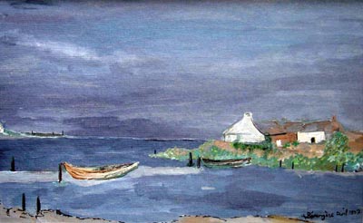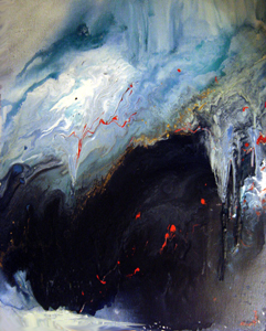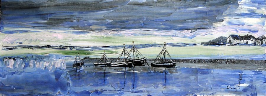 Bérangère Fayard nous présente trois visages. L’un tourné vers l’océan, vers cet horizon formé par les humeurs de la mer et de ses vagues frappant le flanc de navires; le deuxième, plus serein, ponctué de nouvelles formes, de couleurs et de lumières qui sont celles de son pays, l’avesnois. Elle semble nous inviter dans des voyages vers l’inconnu, nous met en garde contre
