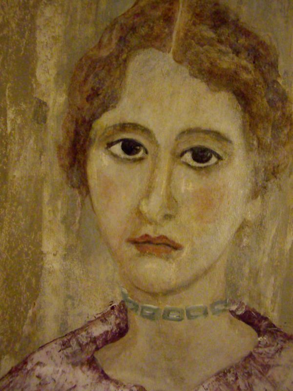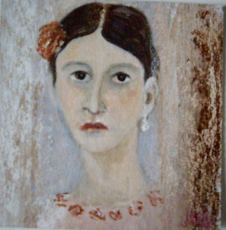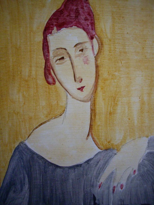 Inspirée des peintures antiques et plus particulièrement des fresques de Pompéi, je réalise principalement des portraits imaginés à partir de personnes rencontrées, croisées au détour de mes voyages.