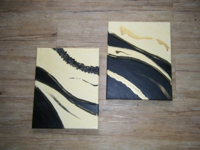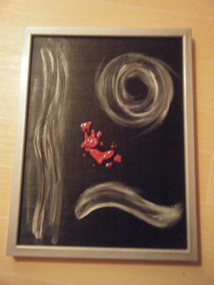 Peinture acrylique, papier collé pour la robe, stylo Posca pour les écritures |
