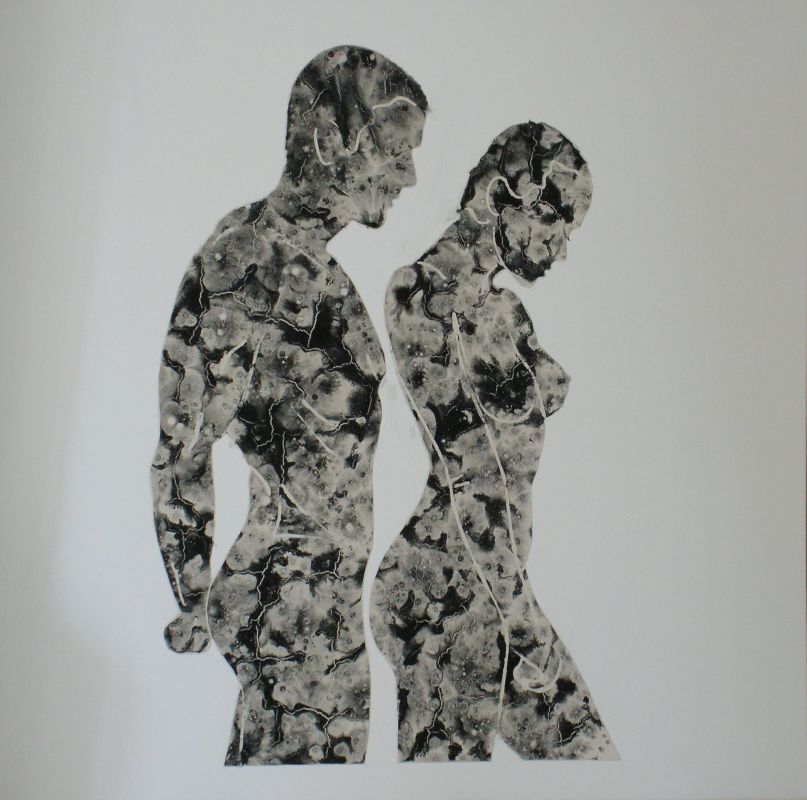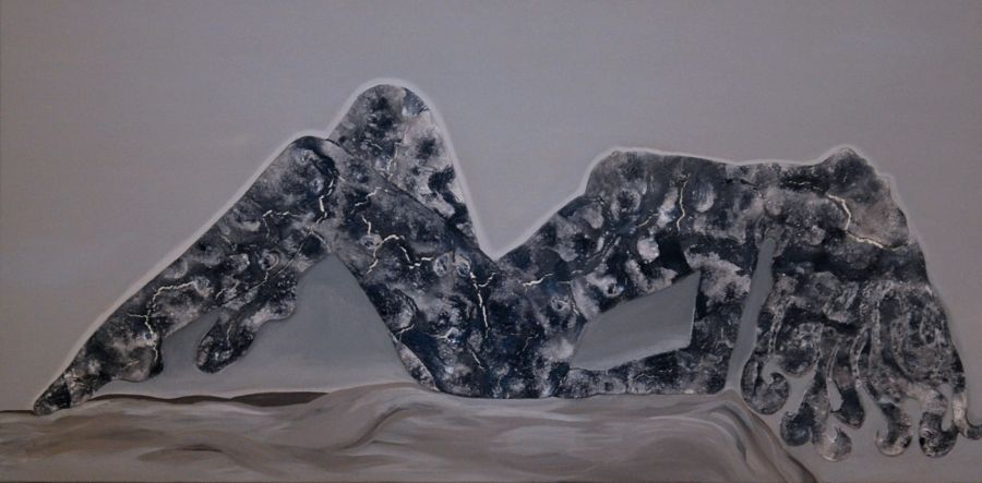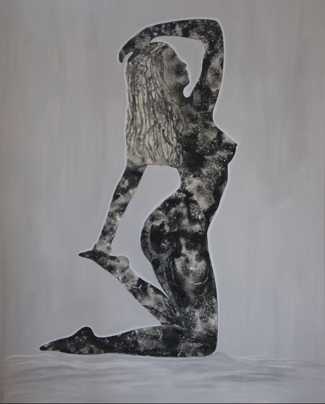 Technique mixte, structure en relief pigment, donne un effet de sculpture en pierre. |