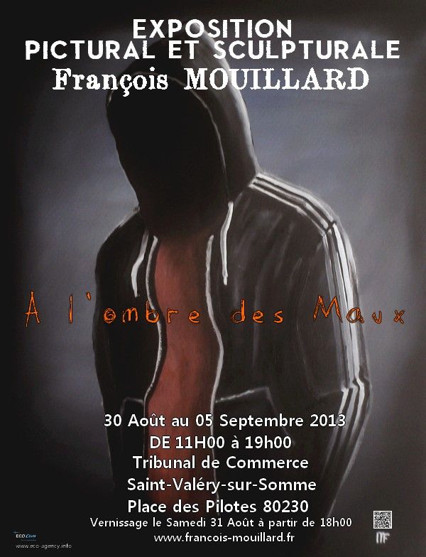 Art pratiquéPeinture, Peinture, PeintureSite de l'artistehttp://www.francois-mouillard.frPrésentation de l'artisteAprès avoir participé à de nombreux concours de dessins, il suivi une formation à l'Institut d'Art Supérieur (IPEDEC) pour approfondir ses connaissances.Son diplôme en qualité de peintre en décor et son talent artistique lui ont ouvert les portes dans des Décorations d'intérieur et dans des appartements luxueux en région parisienne, notamment pour des Émirs koweïtiens pour qui il a créé des fresques romaines, des faux ciel, des paysages en trompes L’œil. De retour en Picardie, il peint essentiellement sur toiles. Il a travaillé sur le thème « Les Oiseaux »dont il a exposé les toiles à La Chapelle St Pierre à Saint-Valéry sur Somme, Paris et le festival du Touquet dans d'autres villes de la Somme et d'autre département. Suite au succès qu'il a rencontré et au retour positif de son public, François MOUILLARD a Travaillé le thème « les Maux », dont il rencontre une reconnaissance internationale. En Janvier 2013, il se lance dans la Sculpture. C’est lors d’un voyage en Italie, notamment dans la ville de Pompéi que l’inspiration lui vient En découvrant sur place les corps pétrifiés et toute l’intensité qui émane de ces ruines. On retrouve donc tout ce ressenti dans ces Sculptures abstraites et primitives. En 2014 le retour au source avec Color Birds. cet exposition qui a attirée plus de 2000 visiteurs. 2015, Exosphère l'artiste nous invites à un voyage oscillant entre réalité et imaginaire. Un voyage entre la terre et la lune. Ses oeuvres