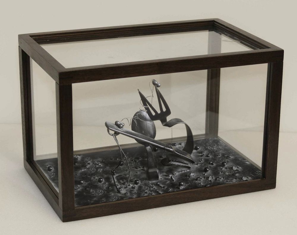 Bois, acier, verre, matériaux divers 40cmx25cm