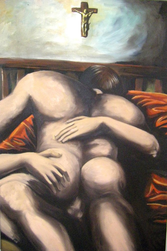 en référence d'une photographie de Henri Oltramare datant de 1900 : une posture lassante et fatiguante, les mains attachées, synonyme d'impuissance, le nu c'est parce qu'on est démuni.
