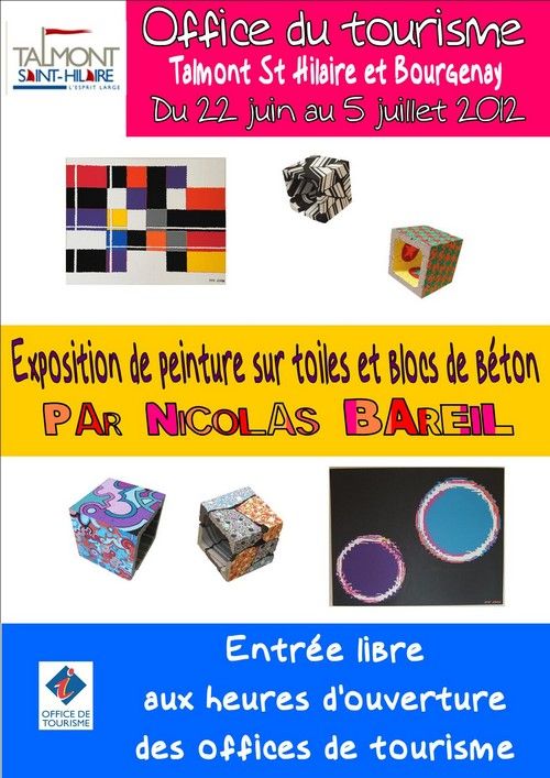 Art pratiquéPeintureSite de l'artistehttp://www.nicolasbareil.frPrésentation de l'artistePeintre autodidacte, je suis inspiré par mes peintres préférés, Kandinski, Haring, Saint Phalle ou Miro pour réaliser des formes géométriques qui n’ont pas de significations particulières. Mon plaisir nait de la colorisation de la toile, de son remplissage. Je ne suis pas un peintre instinctif, je me lance rarement sans avoir une idée précise de ce que je vais faire, mais malgré cela j’aime beaucoup quand la toile évolue différemment de l’idée initiale.Depuis maintenant trois ans, je peins des cubes de béton. Après une quarantaine de toiles, j’ai eu envie de changer de support, de travailler sur un objet lourd, rugueux et en 3 dimensions, loin de la douceur et de surface lisse de la toile. J’ai découvert le bloc béton par hasard, sur ce nouveau support je joue davantage avec les motifs, le travail en volume m’offre de nouvelles perspectives et redynamise ma créativité Ses oeuvres