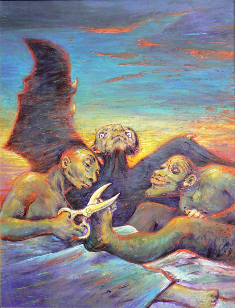 Remarquer le monstre de gauche qui tend à l'Artiste un outil à dessin... |