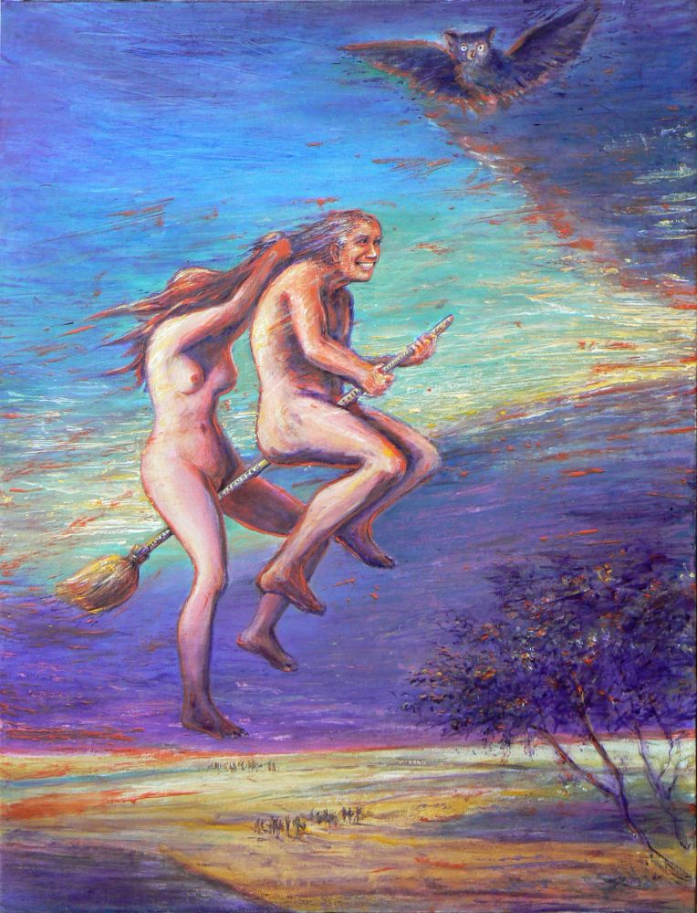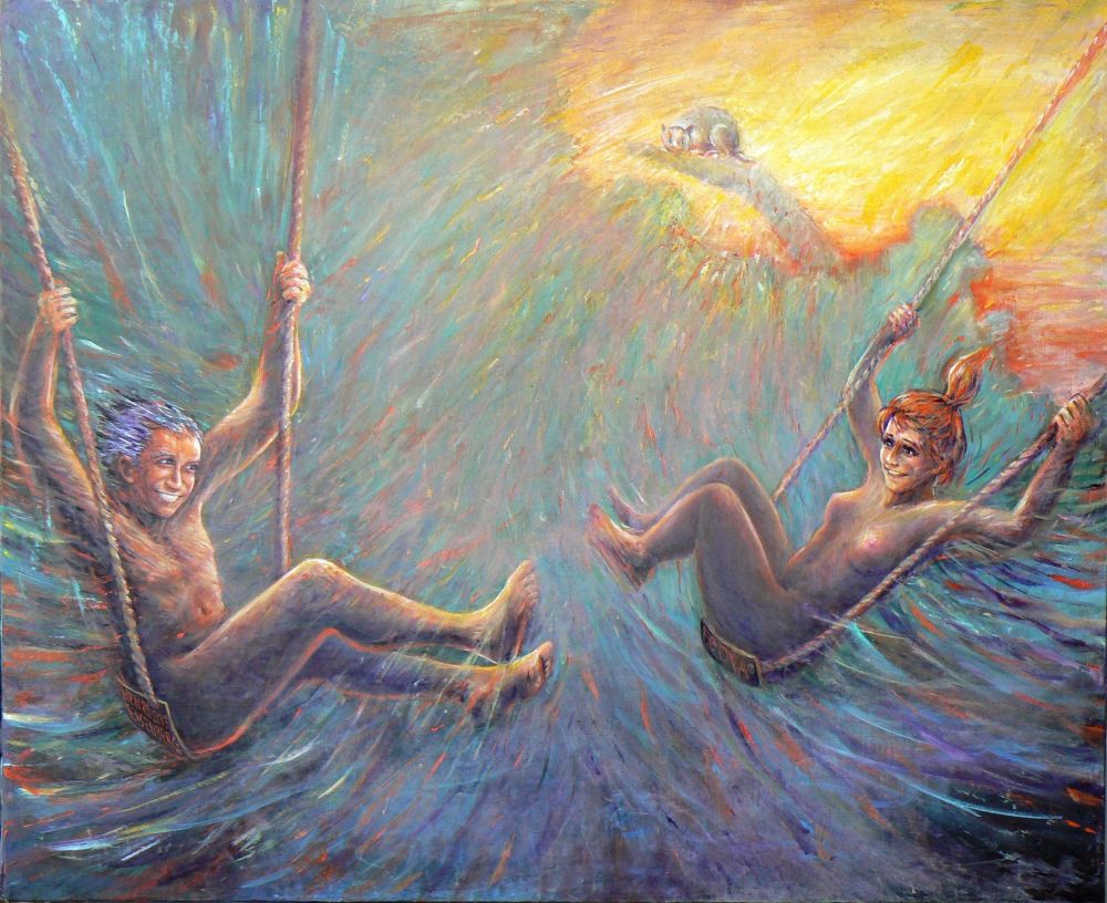 Réunissant deux gravures, j'ai transformé le vieux et la vieille habillés en jeunes nus, insouciants.