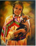 Huile sur toile représentant une petite Indienne portant un petit renard signée F.Diamond |