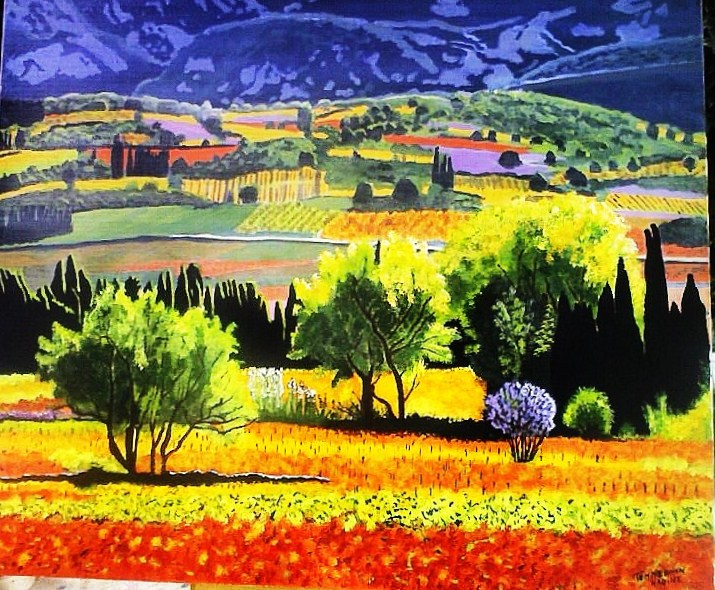 acrylique, toile, Les Corbières, paysage, nature, multicolore,