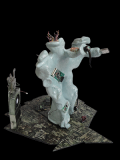 Je travaille autant sur l'ordinateur (fonte, remodelage, modification de la structure et des couleurs) que sur les créations qui vont l'habiter, qui sont pour une part majeure en pâte minérale.