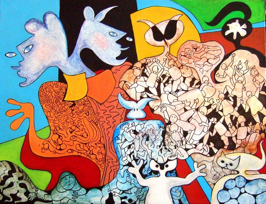 Technique mixte : Acrylique, Encre de Chine
