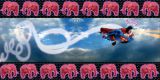 superman saoul virevolte dans le ciel et est tout pixelisé