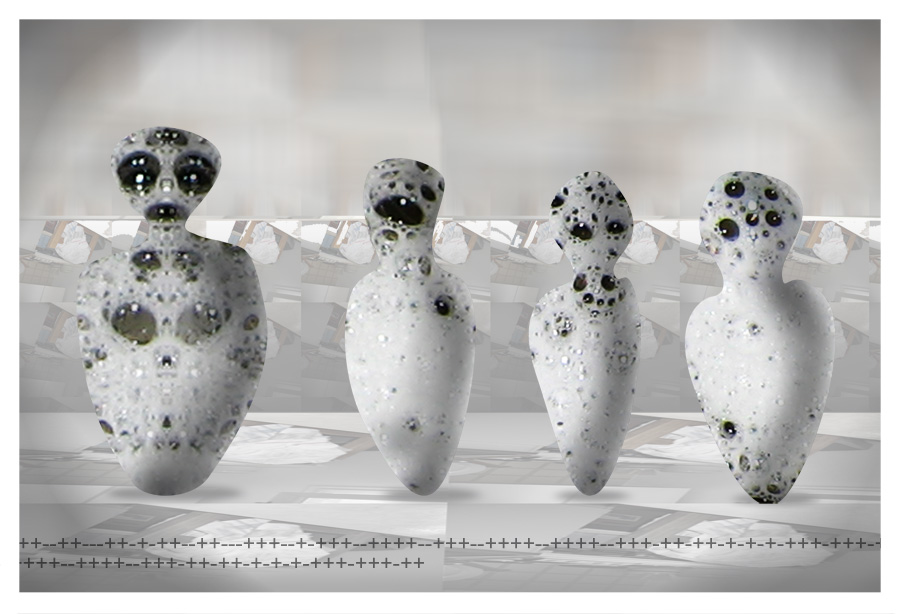 "je cherche par ce biais à créer des oeuvres rythmées et foisonnantes de détails en utilisant la 3d, la photo ou le dessin le tout recomposé en infographie".